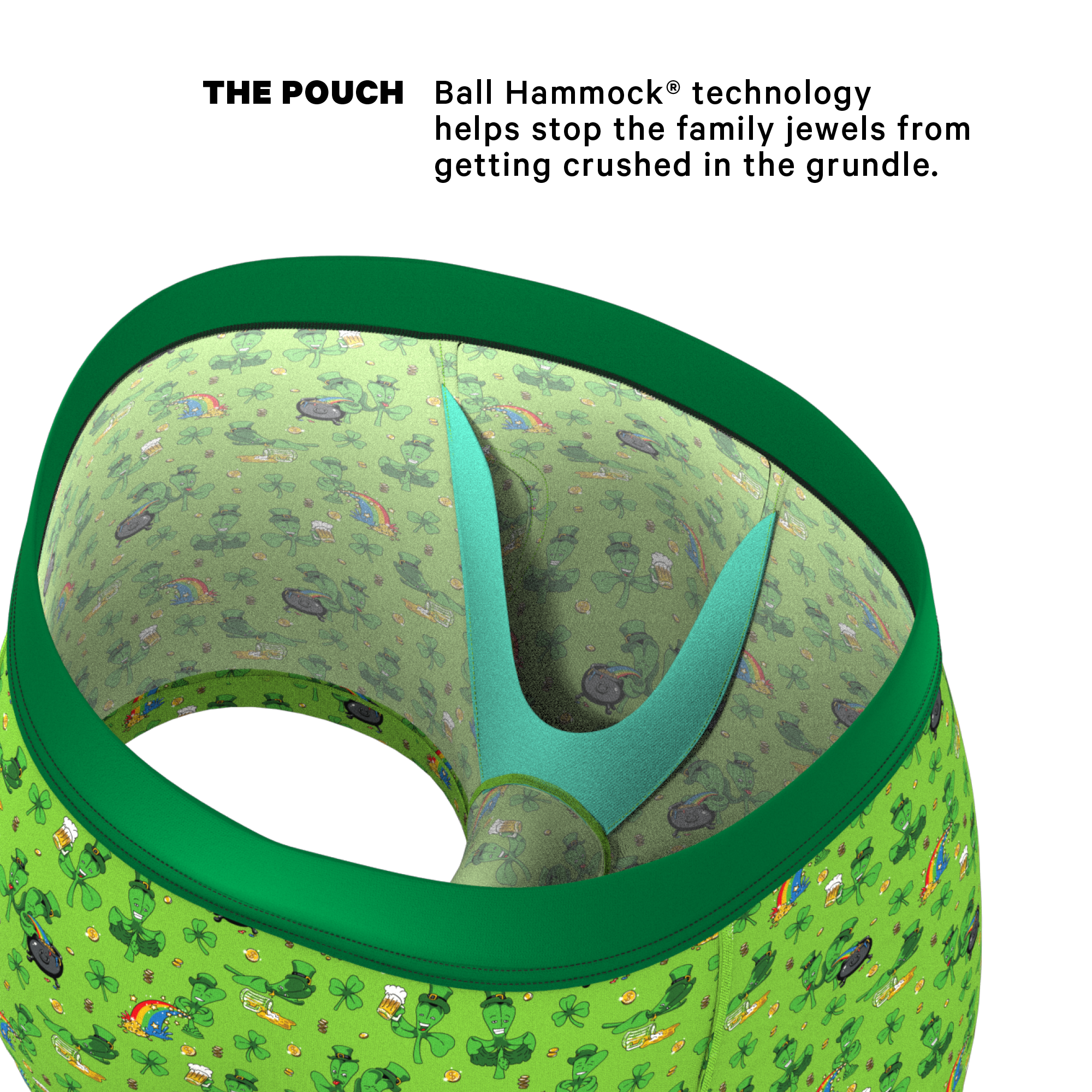 This Ball Hammock® Pouch Trunks Underwear is guaranteed to imbue you with the fabled Luck of the Irish. Especially when it comes to beating public urination charges on St. Patrick’s Day.
